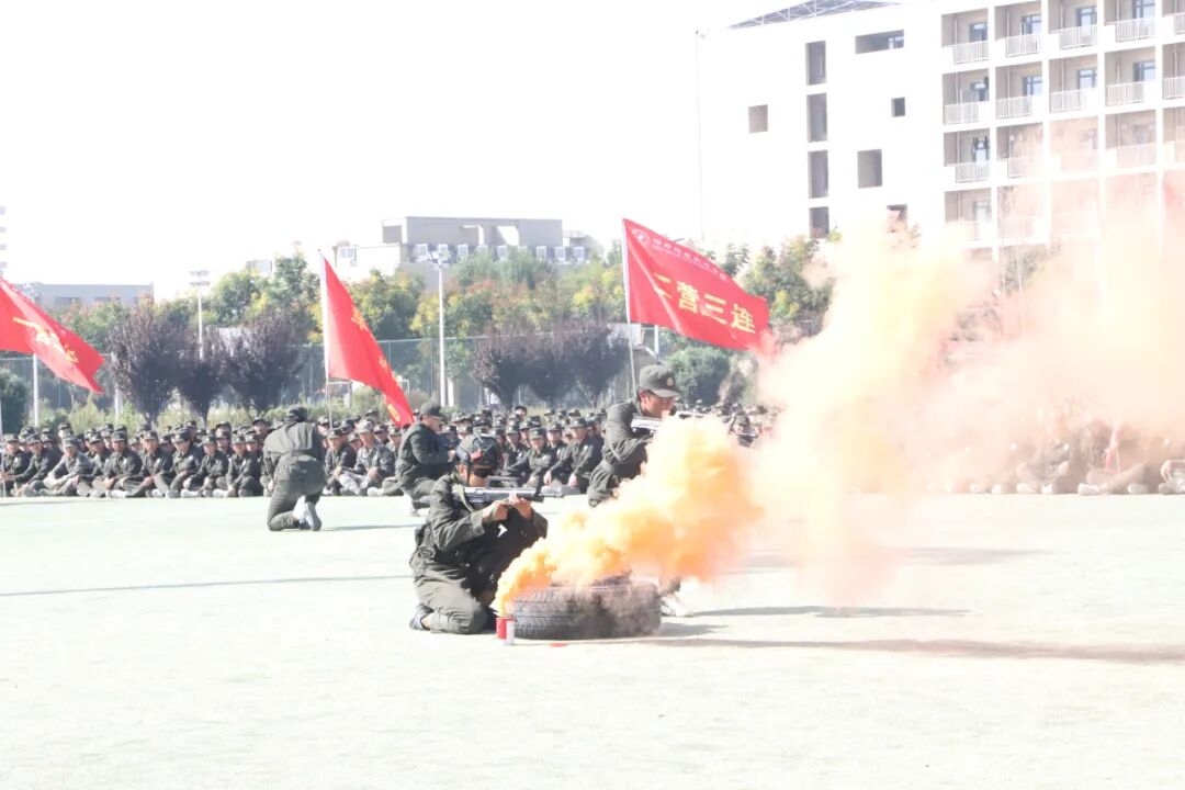 在新生軍訓特色科目展示環(huán)節(jié),各方陣先后表演了匕首操、刺殺操、戰(zhàn)略戰(zhàn)術及戰(zhàn)傷救護等科目,同學們出拳剛勁利落、踢腿凌厲迅猛,每一個動作都精準到位、氣勢十足,贏得現(xiàn)場師生的一致好評。