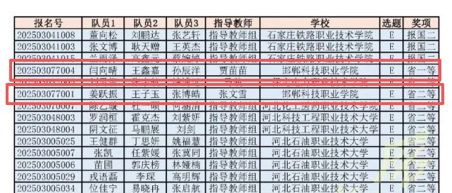 近日,2025年“高教社杯”全國(guó)大學(xué)生數(shù)學(xué)建模競(jìng)賽河北賽區(qū)成績(jī)正式揭曉,邯鄲科技職業(yè)學(xué)院賈苗苗老師指導(dǎo)的閆向晴、王鑫嘉、孫辰洋團(tuán)隊(duì)榮獲河北省賽區(qū)一等獎(jiǎng);張文雪老師指導(dǎo)的姜躍振、王子玉、張博皓團(tuán)隊(duì)榮獲河北省賽區(qū)二等獎(jiǎng),實(shí)現(xiàn)了學(xué)院在該項(xiàng)賽事中的新突破!祝賀他們!