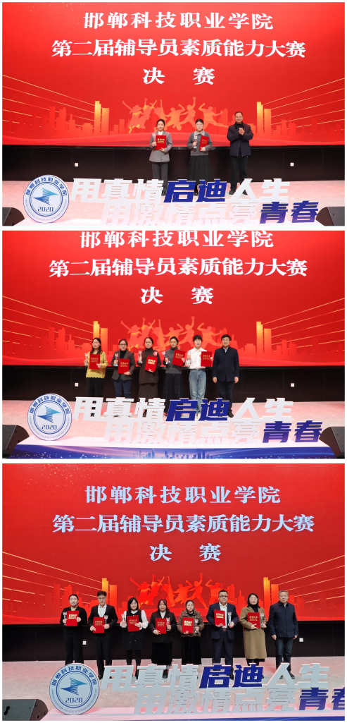 2026年1月4日,邯鄲科技職業(yè)學(xué)院第二屆輔導(dǎo)員素質(zhì)能力大賽決賽在邯鄲職教城國(guó)際學(xué)術(shù)交流中心一樓報(bào)告廳舉行。大賽以“競(jìng)展育人風(fēng)采、勇?lián)T魂使命”為主題,緊扣新時(shí)代高校思想政治工作新要求,全面檢驗(yàn)輔導(dǎo)員隊(duì)伍的理論水平、實(shí)踐能力和職業(yè)風(fēng)采,充分展現(xiàn)了學(xué)院學(xué)生工作隊(duì)伍昂揚(yáng)向上、奮發(fā)有為的精神風(fēng)貌。經(jīng)過(guò)激烈角逐,田夢(mèng)晗、王鈺涵獲得大賽一等獎(jiǎng);史亮霞、崔冉冉、孫可欣、栗艷如、周烊彤獲得大賽二等獎(jiǎng);馮堯、范旭陽(yáng)、田春麗、王俊杰、趙海燕、榮寧寧、張政獲得大賽三等獎(jiǎng)!祝賀他們!