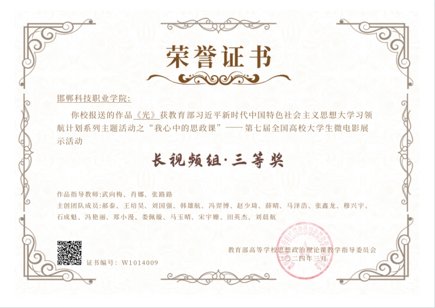 思政課教師獲得河北省大學(xué)生微電影展示活動(dòng)