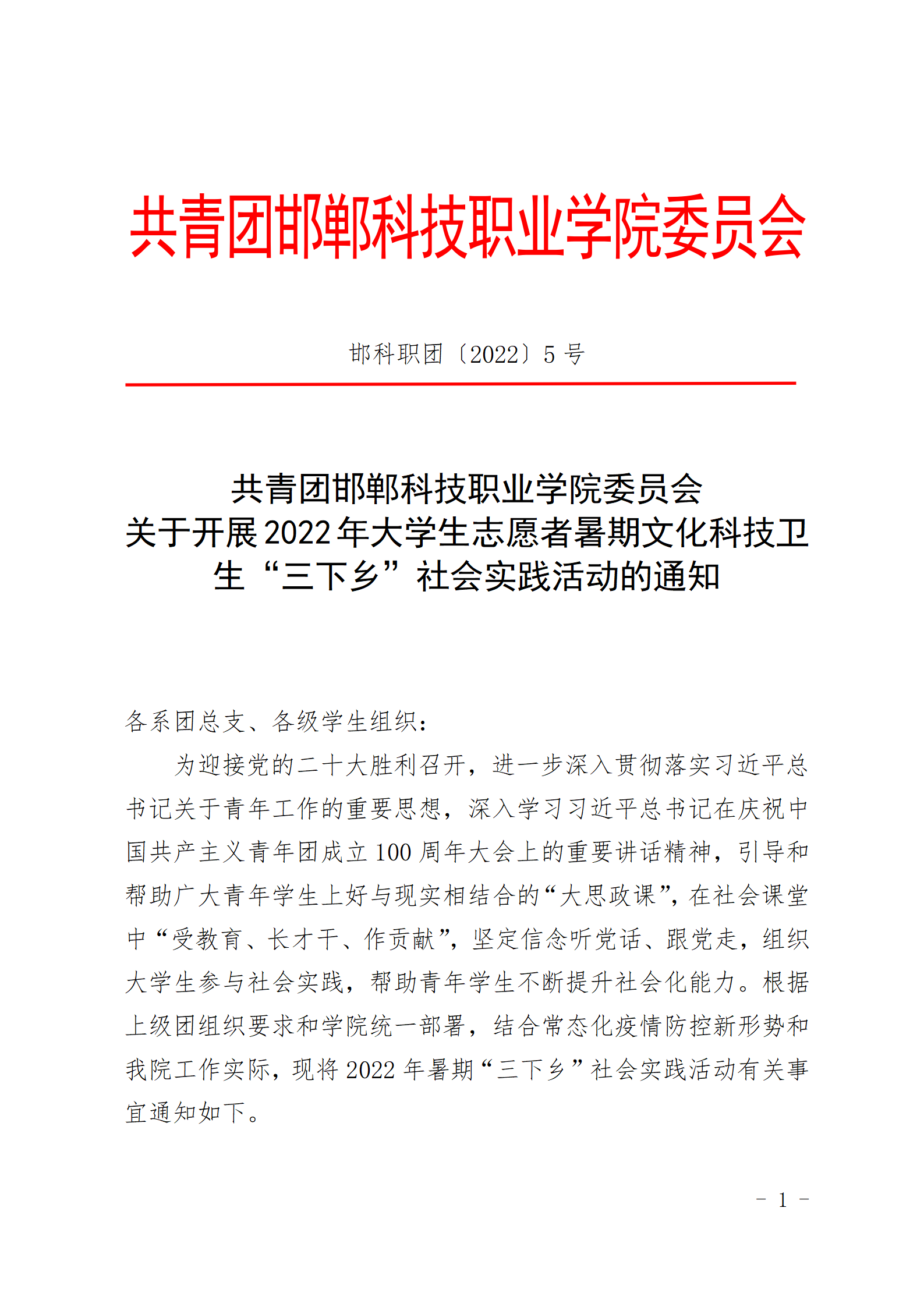2022年大學(xué)生志愿者暑期文化科技衛(wèi)生“三下鄉(xiāng)”社會實踐活動的通知