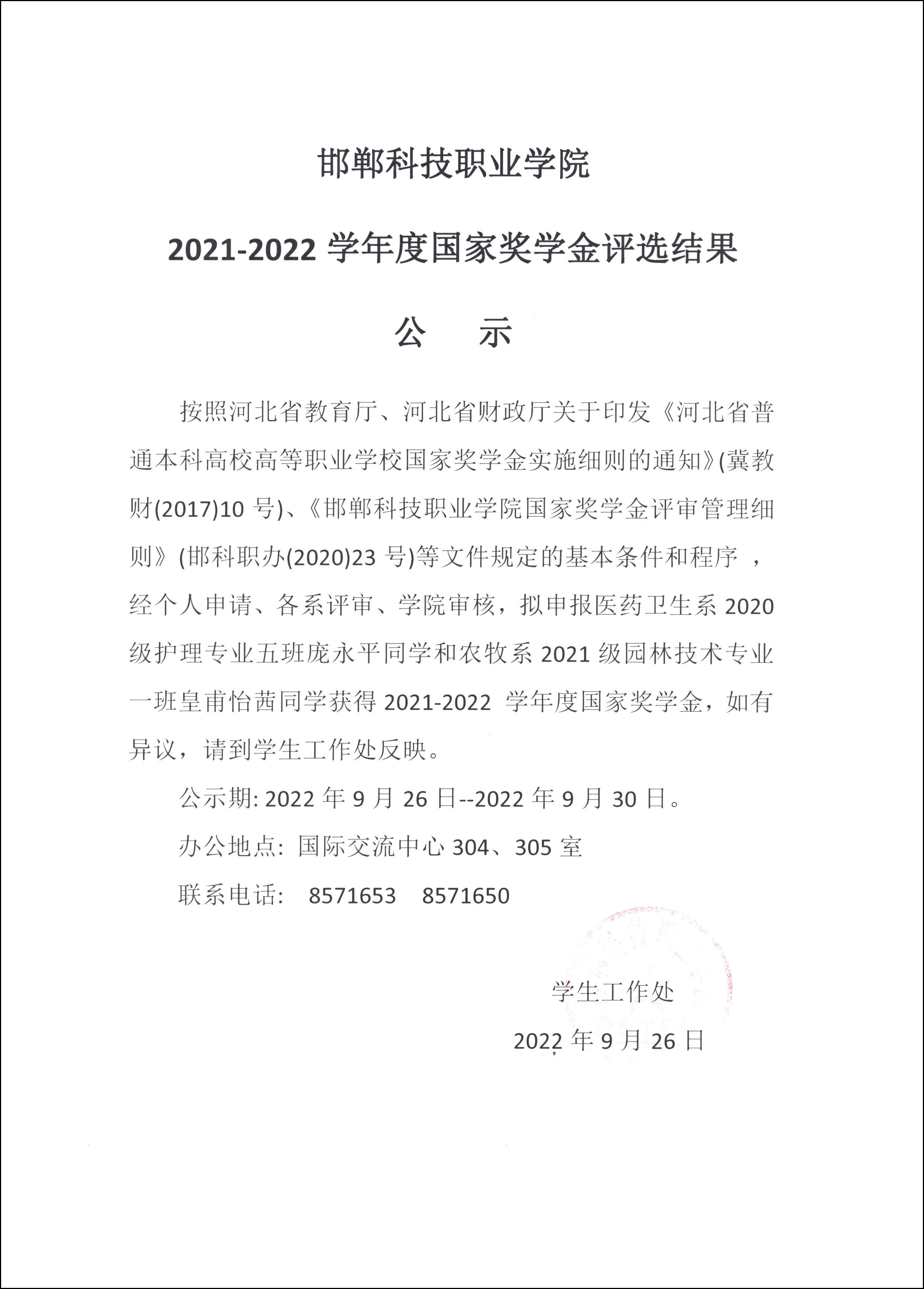 2021-2022學(xué)年度國家獎學(xué)金評選結(jié)果公示