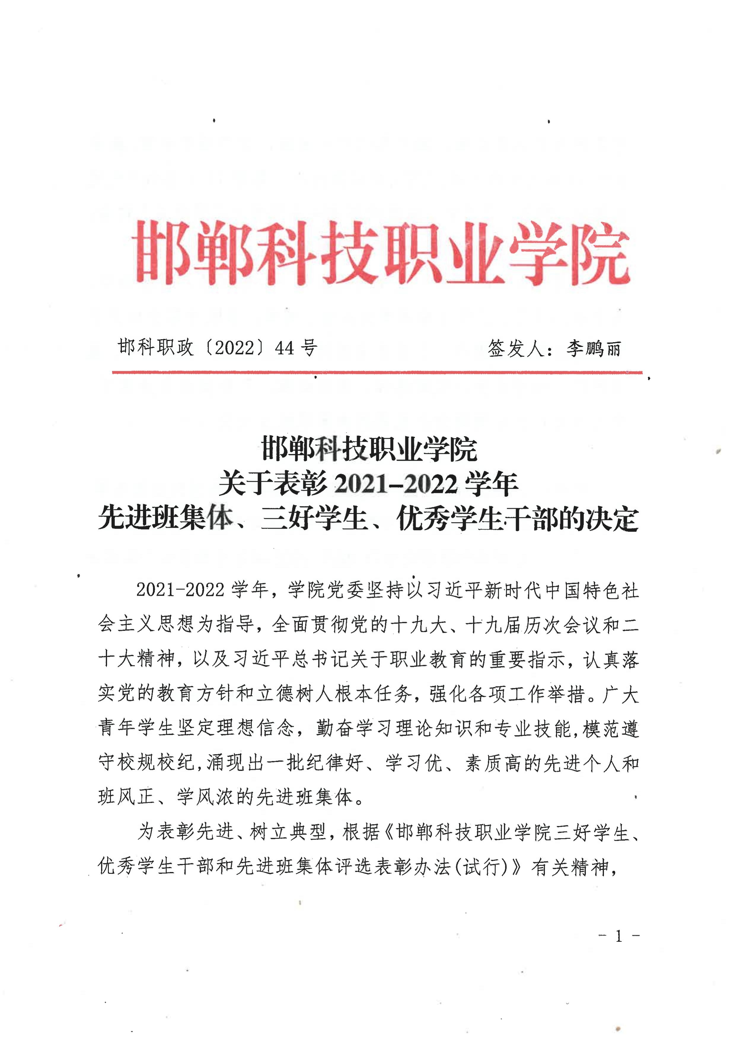 2021-2022先進(jìn)班集體、三好學(xué)生、優(yōu)秀學(xué)生干部名單
