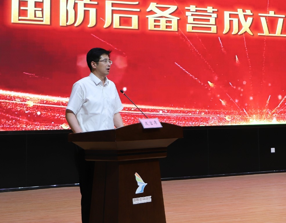 冀南新區(qū)人民武裝部李敬立同志為國(guó)防后備營(yíng)授旗。