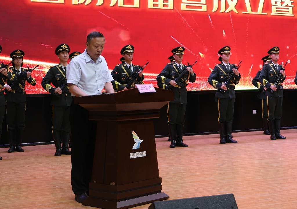 舉行國(guó)防后備營(yíng)成立暨揭牌授旗儀式