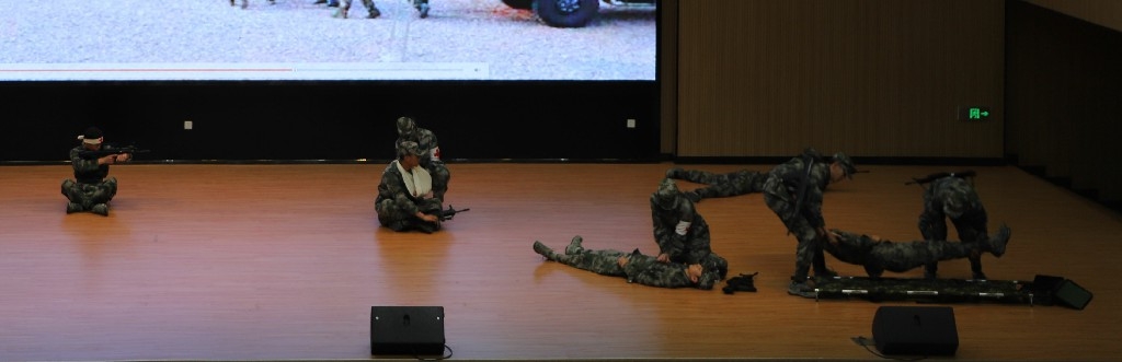 在國(guó)防后備營(yíng)營(yíng)員們的拳術(shù)、隊(duì)列、戰(zhàn)場(chǎng)救護(hù)、匕首操和大合唱表演中,大會(huì)落下帷幕。