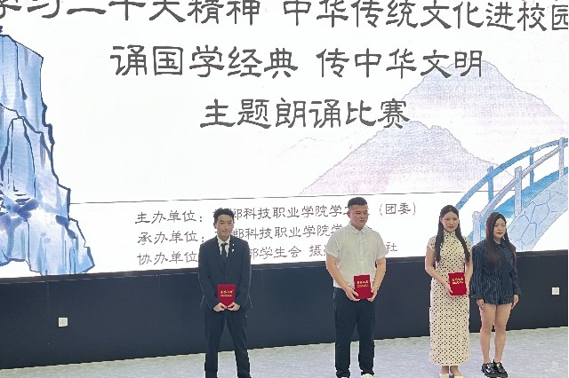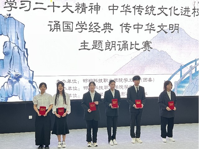 今年是全面貫徹落實(shí)黨的二十大精神的開(kāi)局之年,為深入學(xué)習(xí)貫徹習(xí)近平總書(shū)記關(guān)于弘揚(yáng)中華民族優(yōu)秀傳統(tǒng)文化的講話精神,認(rèn)真吸取中華傳統(tǒng)文化的思想精華和道德精髓,提高我校學(xué)生的文化素養(yǎng)與道德素質(zhì),6月7日下午,邯鄲科技職業(yè)學(xué)院“靚青春·青年文化季 學(xué)習(xí)二十大精神 傳統(tǒng)文化伴我行,誦詩(shī)文經(jīng)典,傳中華美德”主題朗誦比賽在國(guó)際交流中心一樓多媒體報(bào)告廳舉行,學(xué)生工作處趙芳處長(zhǎng)出席活動(dòng)。