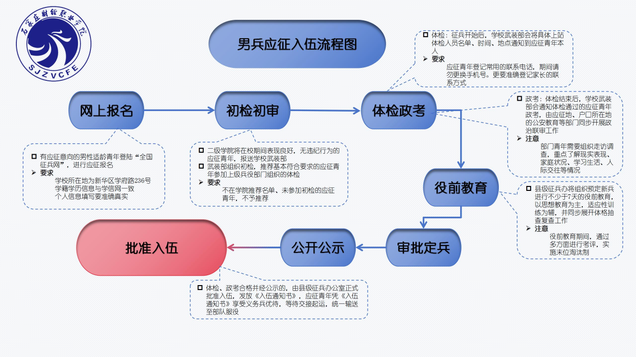 根據(jù)學(xué)院的征兵工作安排,凡我院學(xué)生有意愿參軍入伍,在網(wǎng)上報名完成后,輔導(dǎo)員老師針對學(xué)生在校期間表現(xiàn)以及學(xué)業(yè)完成情況進行初步考察,考察通過后會推薦到學(xué)院武裝部,才可以參加學(xué)校組織的初檢、上級兵役部門組織的體檢等后續(xù)工作。